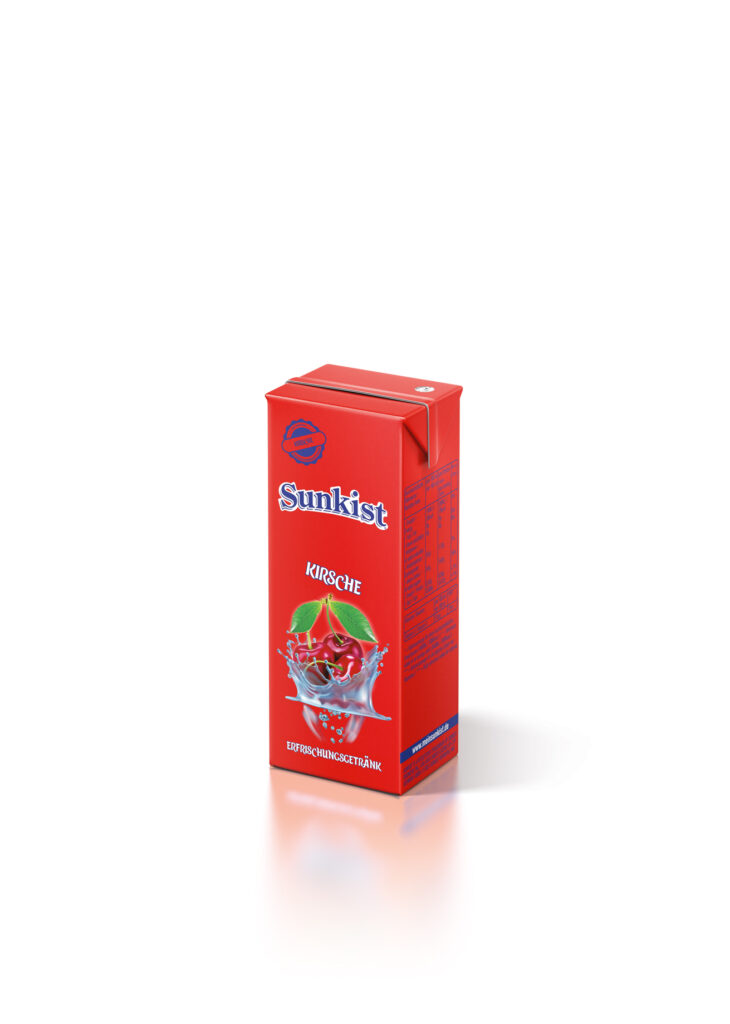 SUNKIST im 200 ml Tetrapak in Kirsch- und Multivitamingeschmack.